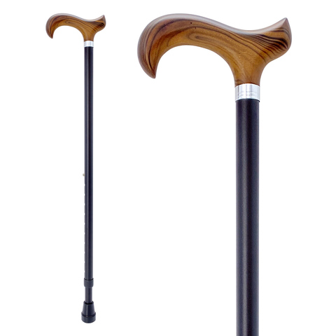 قصب مشي أسود قابل للتعديل من الألومنيوم بمقبض خشبي رائج البيع